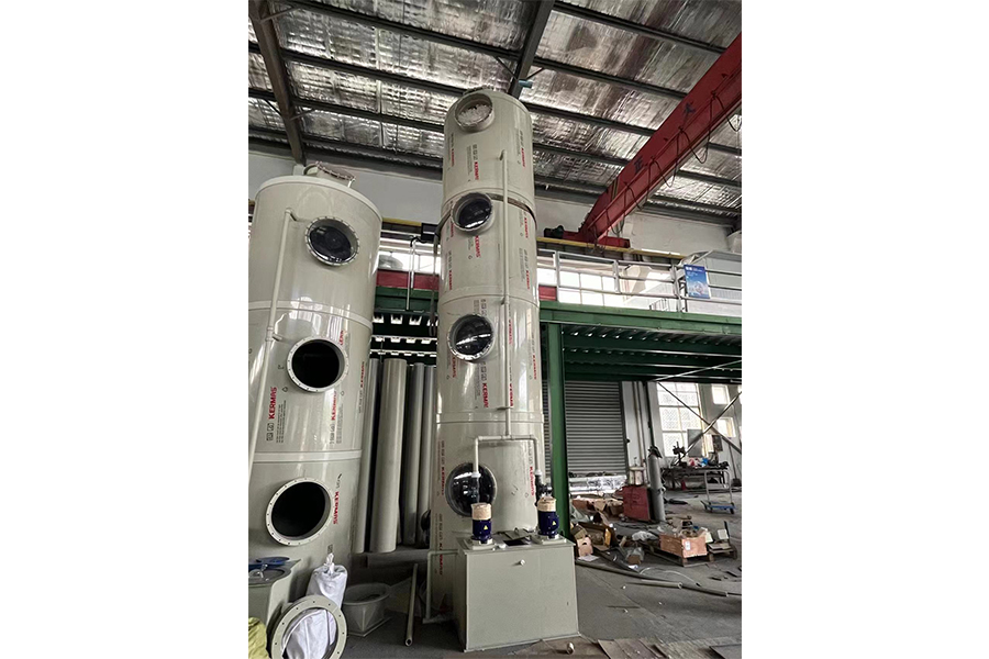 洗滌塔也叫水洗塔,采用循環(huán)水噴淋廢氣的方法來 吸收去除廢氣,利用臭氣能溶于水的性質(zhì),以水為 基本介質(zhì),通過適當(dāng)比例的液體吸收劑處理氣體混 合物,完成沉降、降溫、聚凝、洗凈、中和、吸收 和脫水等物理化學(xué)反應(yīng),以實(shí)現(xiàn)氣體的凈化,使廢 氣濃度和排放量達(dá)到環(huán)保標(biāo)準(zhǔn)。